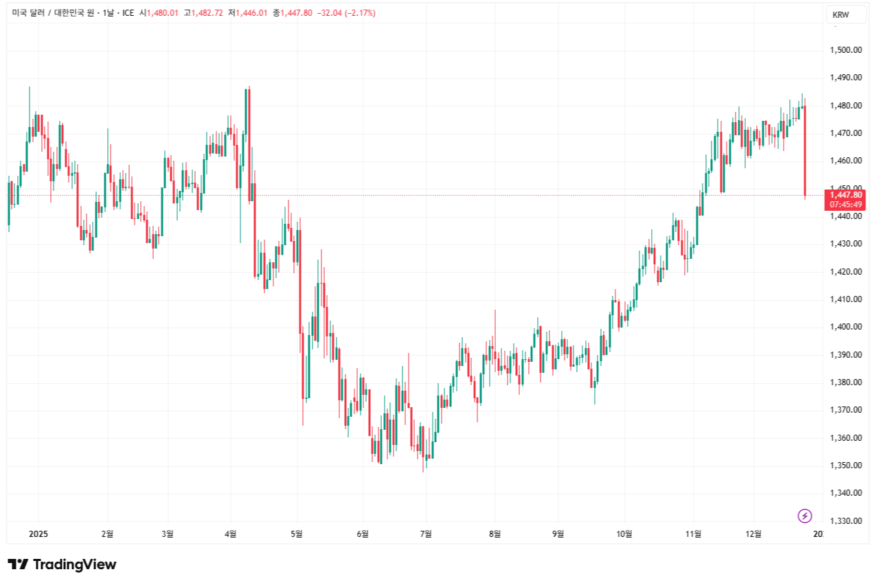 오늘 당국은 기존 조치보다 훨씬 강력한 수단을 동원하며 환율 하락에 대한 명확한 시그널을 시장에 전달했다. 그 효과 역시 즉각적으로 나타난 것으로 보인다. 크리스마스 휴일을 앞두고 거래가 얇아진 시점에서 글로벌 달러 약세가 이어지고, 엔화와 위안화 등 주요 이종통화의 가치가 상승하는 환경 속에서 정부의 개입 시점은 적절했던 것으로 평가된다.