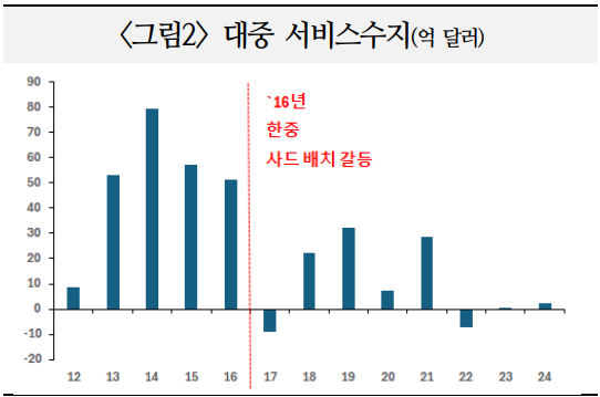 중국이 2016년부터 한한령을 통해 한국 콘텐츠 유입을 제한하면서 우리나라의 대중 서비스수지는 급감했다. 이번 정상회담 이후에도 서비스 시장 개방과 관련해서는 추가적인 협의가 필요해 보인다. 중국 측이 경제, 혁신, 친환경 협력 확대를 강조한 반면, 서비스 부문에 대한 언급은 부재했기 때문이다.