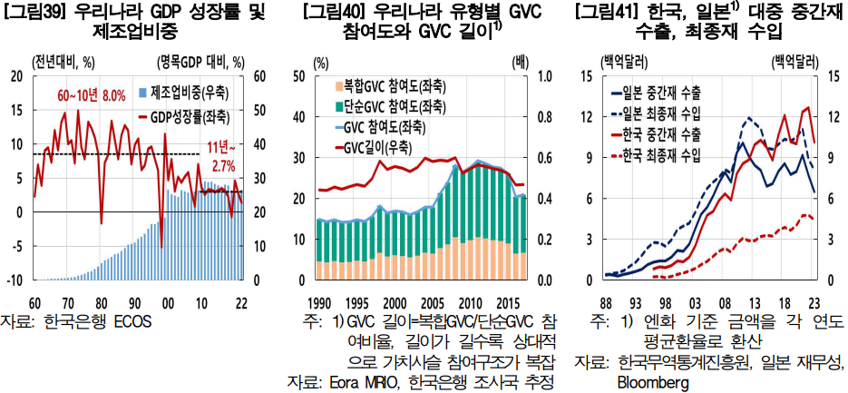 우리나라는 중국·IT(반도체)·수출이 주도하는 성장 공식을 유지해 오고 있다. 그에 따라 중국·IT(반도체)·수출에 대한 의존도도 높아졌다. 그러나 최근 글로벌 기술·교역 여건이 급변하면서 우리나라도 기존 성장전략의 유효성이 저하될 수 있는 상황에 직면하고 있다.