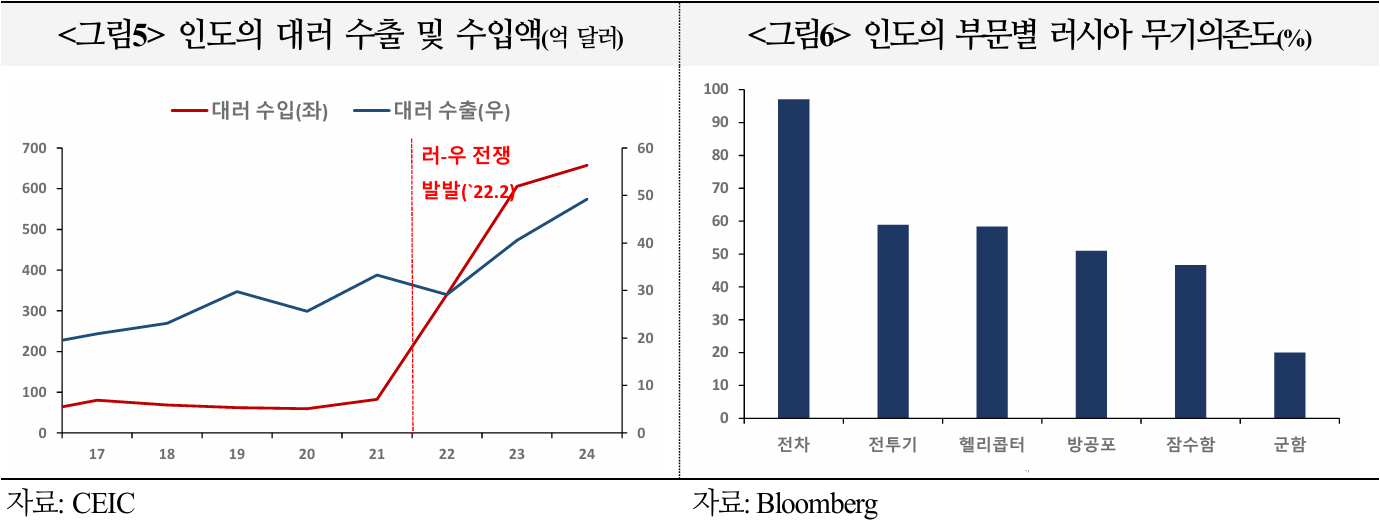 미국은 인도와 러시아의 경제적 유착을 문제 삼는 모습이다. 인도의 러시아 원유·무기 의존도가 40%에 달하고, 대러 수입도 4년 연속 늘어나면서 러시아의 재정 안정화에 크게 기여했다는 점이 미국의 불만 요인이다.