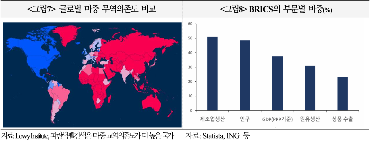 브릭스는 전 세계 GDP의 40%, 인구 및 제조업생산은 50%를 차지하는 등 영향력이 커지고 있다. 인도는 미국의 견제를 계기로 브릭스 내 입지 강화를 모색할 가능성이 크다.