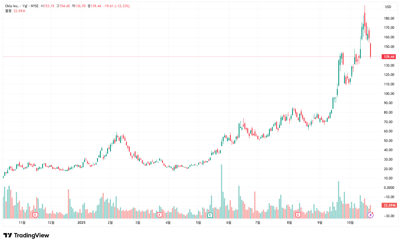 어제는 오클로뿐 아니라 리게티(Rigetti), 뉴스케일 파워(NuScale Power), 우라늄 에너지(Uranium Energy) 등 원전 및 양자 관련주가 일제히 급락했다. 그동안의 랠리 이후 과열된 투자심리가 가라앉으면서 일종의 버블 붕괴 조짐으로 해석되기도 한다.